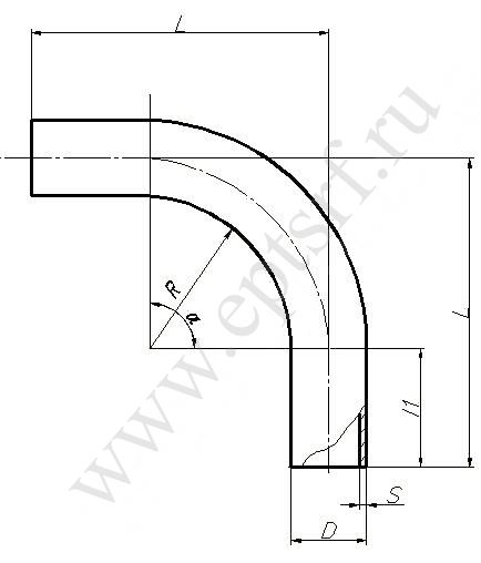 Радиус гиба от 2 до 5 Ду. Толщина стенки труб от 4 до 40 мм. По согласованию сторон допускается другие радиусы гиба и длины прямых участков.