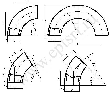 Конструкция и размеры отводов соответствуют требованиям ГОСТ 17375-2001, ГОСТ 30753-2001.