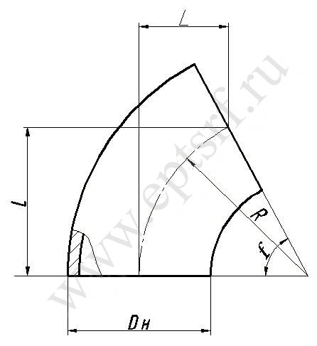 Примечание: по требованию заказчика отводы могут быть изготовлены сварными секторными с радиусом гиба от 1,0 Dн до 10 Dн диаметром от 530 до 1420 мм на условное давление до 10 МПа (100 кгс/см2) по ТУ 102-488, ТУ 51-29 и др. Возможна поставка и деталей неуказанных в таблице типоразмеров.