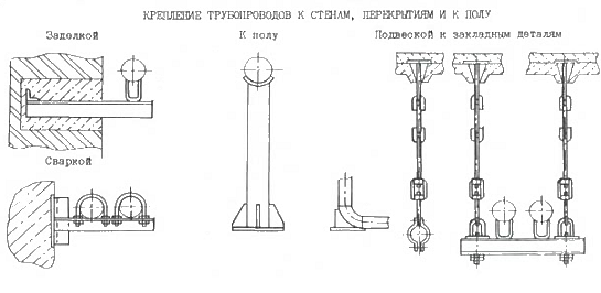Крепления трубопроводов к стенам, перекрытиям и  полу: