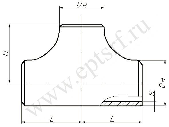 | Наружный диаметр /мм/ Dн/Dн | S /мм/ | Условный проход Dy/Dy | Условное давление Ру МПа/ (кгс/см2 ) | Длина заготовки 2L | н /мм/ | Масса тройника не более /кг/ |