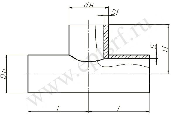 Обозначение при заказе тройника сварного DH 219/168 мм, S=25/18 мм, давление 16 МПа из стали 20 при пульсирующей нагрузке: Т1 219х25-168х18-16-У ТУ 51-743-76 то же из стали 09Г2С: Т1 219х25-168х18-ХЛ ТУ 51-743- 76.